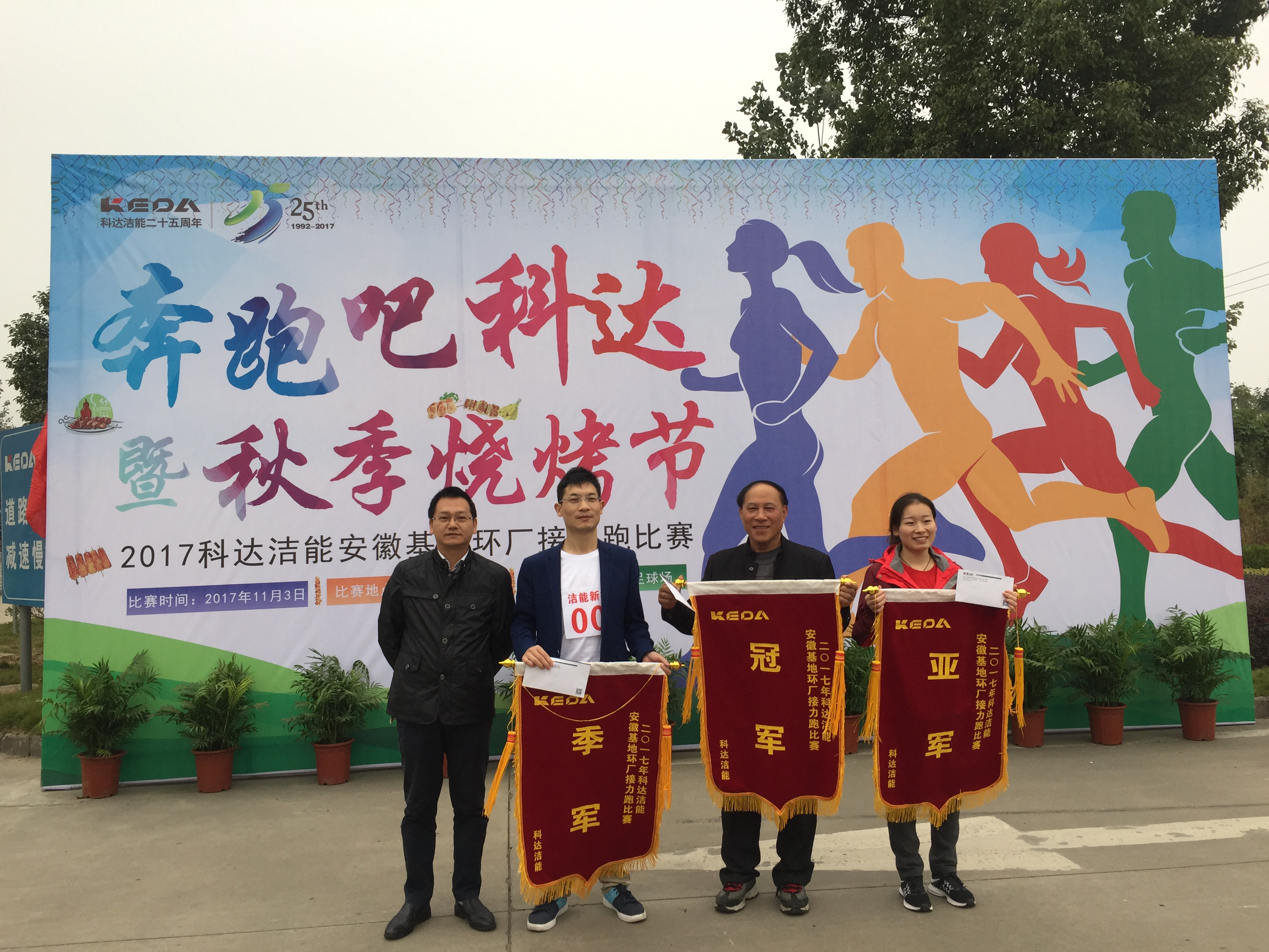 為響應(yīng)科達公司“身體健康,企業(yè)才能健康”的號召,激發(fā)員工蓬勃向上的精神風(fēng)貌和積極進取的團隊精神,加強員工體育鍛煉、提升員工身體素質(zhì)??七_潔能安徽基地于11月3日下午舉辦了“奔跑吧,科達!”環(huán)廠接力跑比賽。參賽隊伍共6支,分別為科達潔能、生產(chǎn)供應(yīng)中心、虎渡科達、墻材機械、新材料、售電&新能源聯(lián)隊。