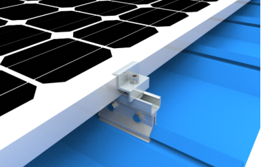 其他鋼結(jié)構(gòu)屋面則采用BIPV支架形式,采用熱浸鍍鋅金屬內(nèi)板+75mm厚玻璃纖維保溫棉+鍍鋁鋅鎂BIPV專用角馳屋面板敷設(shè),再位于角馳型屋面板波峰處安裝鋁合金角馳型夾具,配合相配套的鋁合金壓塊固定件固定組件,光伏組件順屋頂斜面安裝,本BIPV安裝方式后期維護(hù)彩鋼瓦、組件拆卸非常簡單方便、對(duì)屋面彩鋼瓦可以做到0損傷。